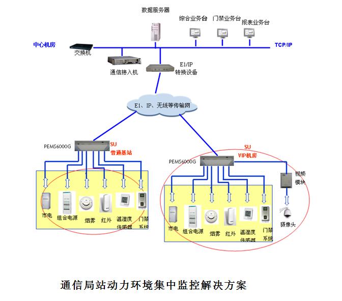 PEMS动力环境监控系统应用于通信局站中,负责对基站电源、空调、油机、蓄电池、高低压配电等多种设备和环境的各种参数进行监控、记录和显示。配合上层的PEMC应用软件,可以实现在监控中心对区域内分布的各个独立的监控对象进行遥测、遥信、遥控和遥调,实时监视动力设备和机房环境的状态,进行图像及防盗的监控,记录和处理相关数据,及时侦测各类故障并通知相关人员进行处理;提供相应的数据和报表,制定出合理的设备维护、管理及节能方案,为动力设备的优化配置提供详实的资料来源,提高无人值守基站供电系统的可靠性,保障通信设备的安全性,从而实现通信局(站)少人或无人值守的目的。